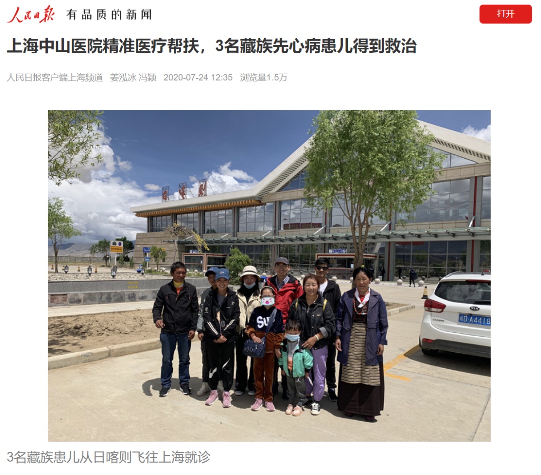 中山医院有9个紧密型医联体及数个长期援建单位,医务处团队在三下乡活动中协同各相关单位开展联动,扩大活动范围,惠及服务更多患者。历年的医疗义诊,无论是长三角的上海和苏州、东南沿海的福建地区,还是青藏高原的察雅和岗巴,中山人留下的的医疗足迹涉及广大农村和老少边穷地区,受到了当地百姓的交口称赞。2020年,中山医院赴西藏岗巴医疗队在下乡健康普查和义诊过程中,凭借医疗队员丰富的临床经验——通过心脏听诊初步判断,以及医务处协调远程连线本部心脏超声诊断科同事详细诊断后,发现了3名患有先天性心脏病的藏族孩子,其中一名14岁男孩患有先天性室间隔缺损,另有两名14岁和5岁的女孩患有先天性动脉导管未闭,急需进一步确诊和治疗。由于当地医院不具备开展先天性心脏病手术治疗的条件,且3位小患者都来自当地建档立卡贫困家庭,无力承担医疗费用,医务处在了解情况后,当即协调及汇报医院领导,经医院与复旦大学陈灏珠院士医学发展基金协商,决定将这3名孩子纳入复旦大学陈灏珠院士医学发展基金“心·肝宝贝”救助计划,并成功在中山医院完成相应手术治疗,在人民日报等主流媒体平台刊载宣传报道。