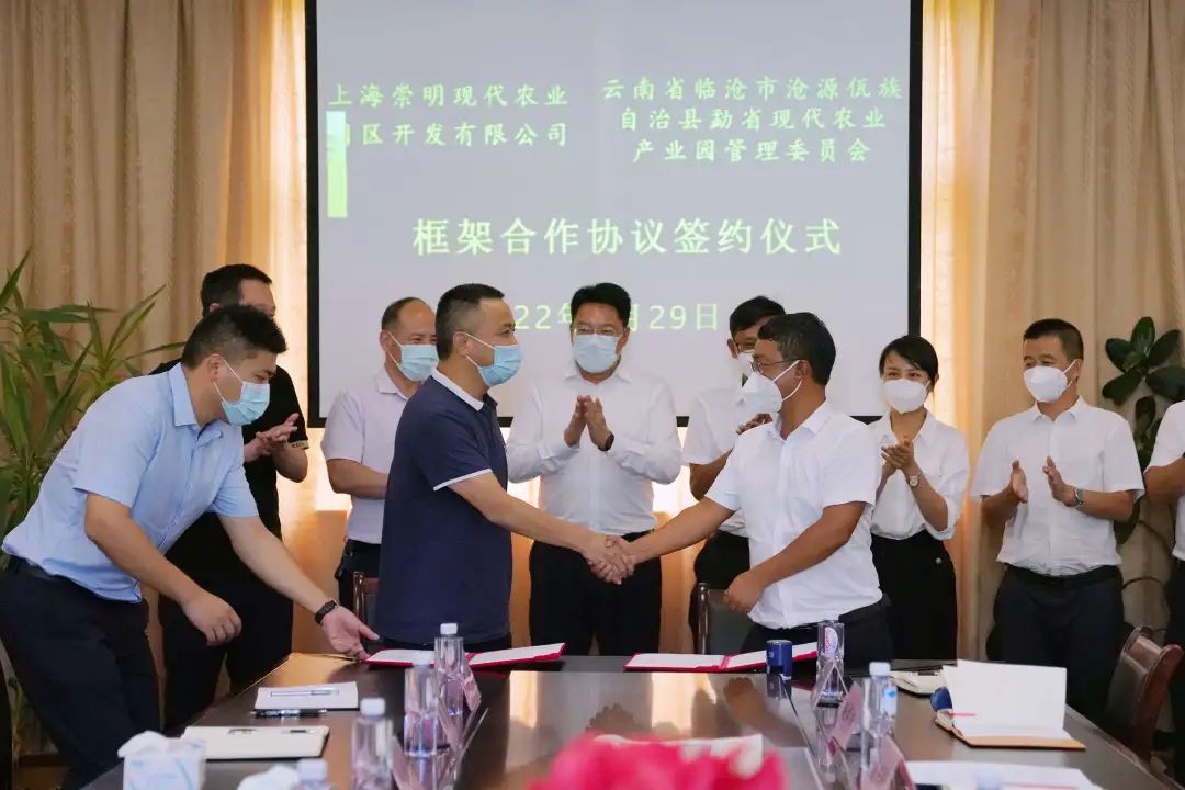 7月29日,沧源佤族自治县勐省现代农业产业园管理委员会与上海崇明现代农业园区开发有限公司《共建产业园框架合作协议》签约仪式在上海崇明举行。沧源县委书记唐兴平、县政协主席李文明出席签约仪式。