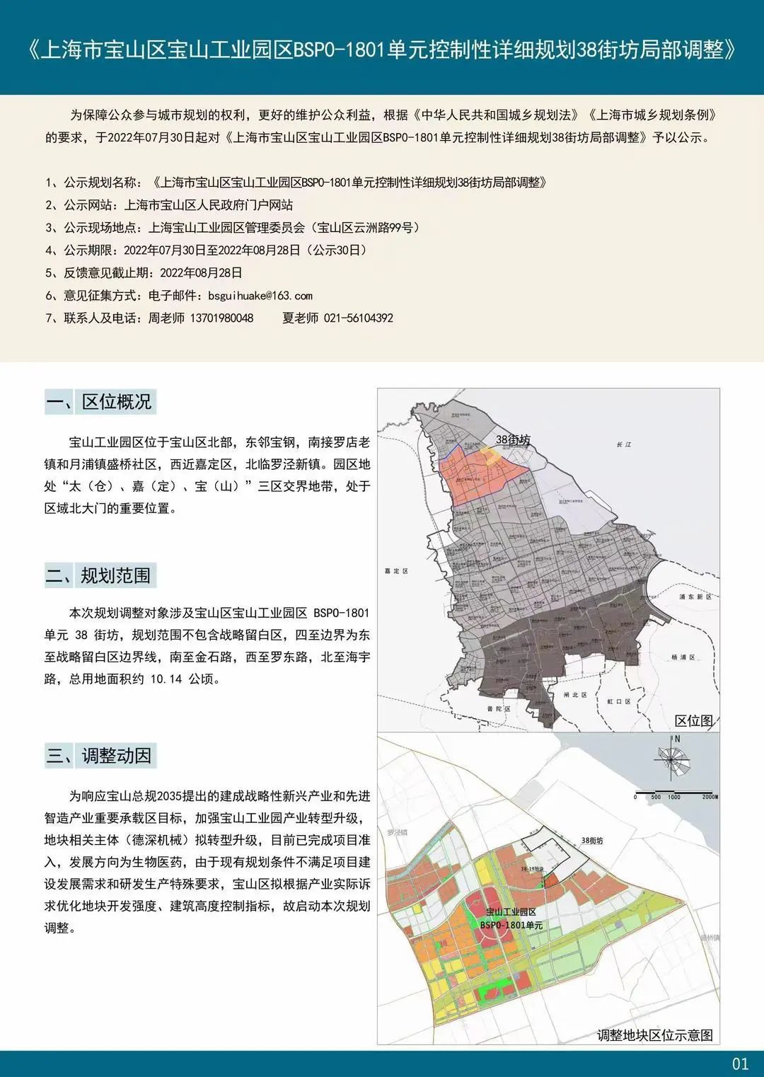 1、公示规划名称:《上海市宝山区宝山工业园区BSP0-1801单元控制性详细规划38街坊局部调整》