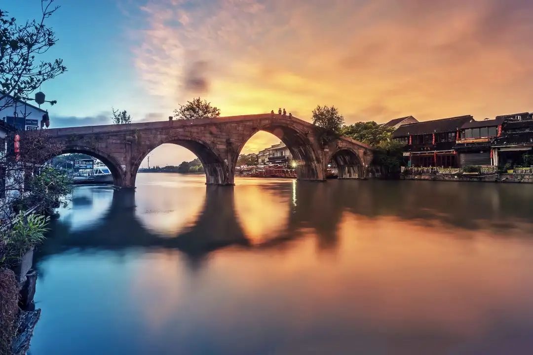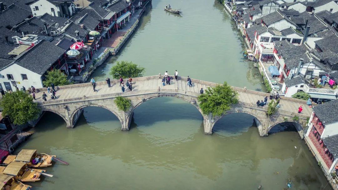 曾有诗云:“长桥驾彩虹,往来便市井。日中交易过,斜阳乱人影”。登上古桥,极目远眺,两岸粉墙黛瓦的明清民宅、傍水茶楼里凭窗赏景的游客、河中摇曳生姿的木船,装点出一幅浓墨重彩的水乡画卷。