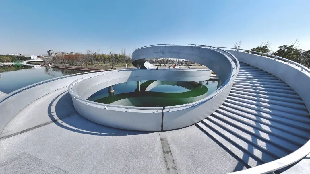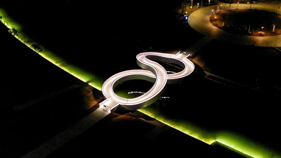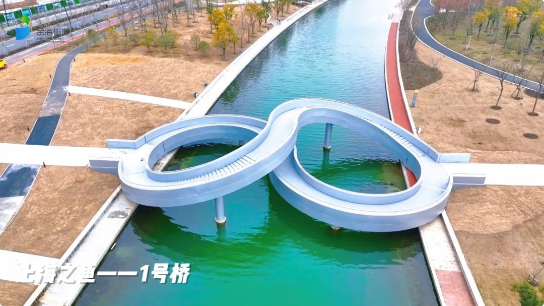 在奉贤的上海之鱼,有一座高颜值的“8”字形人行桥。