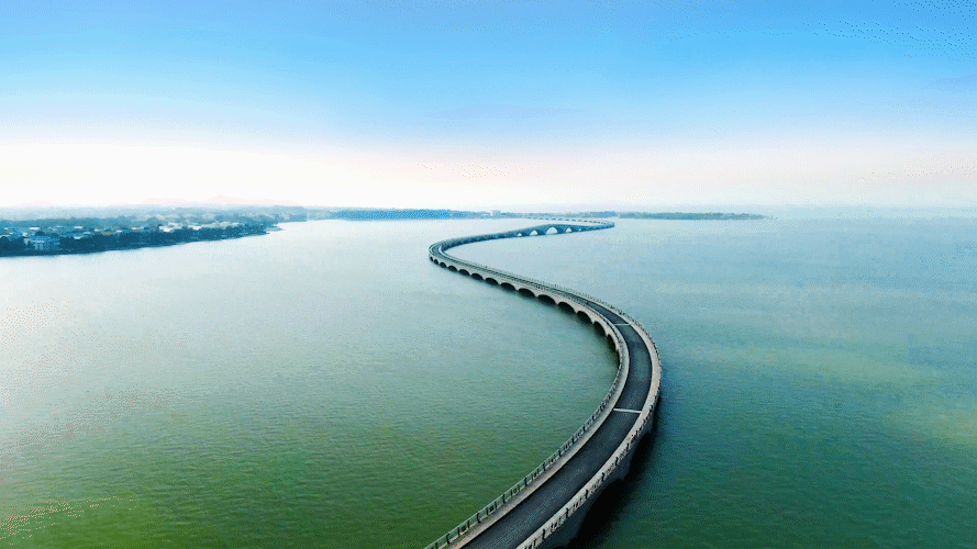 在美丽的淀山湖畔,有这么一条“彩虹桥”。彩虹桥全长1470米,从空中俯瞰,宛如一条飞舞的巨龙,横卧淀山湖之上。