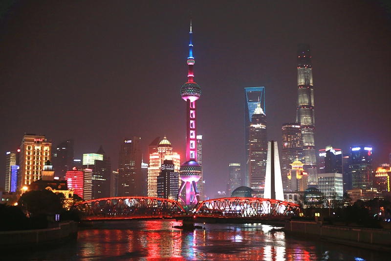 苏州河上的乍浦路桥可以说是是拍摄上海夜景的绝佳位置之一。陆家嘴四件套、外白渡桥、外滩源典雅的中外建筑倒影在苏州河中美轮美奂,有古今融合之意。