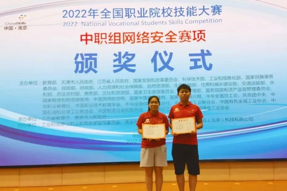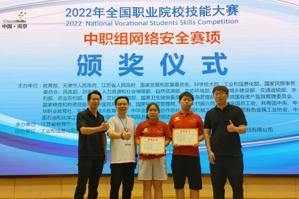 学校鼓励学生参加各级各类职业技能竞赛,学生们通过参加职业技能竞赛,除了能够通过赛事的训练,将平日里所学知识和技能运用到实际项目中,还能够接触到最新的行业前沿技术。本次取得的优异成绩展现了学校在推进网络安全专业建设方面所取得了显著成效,也是近年来学校在不断提升职业教育教学质量、专业实践教学水平,着重培养学生创新精神和动手能力所取得的有效成果。