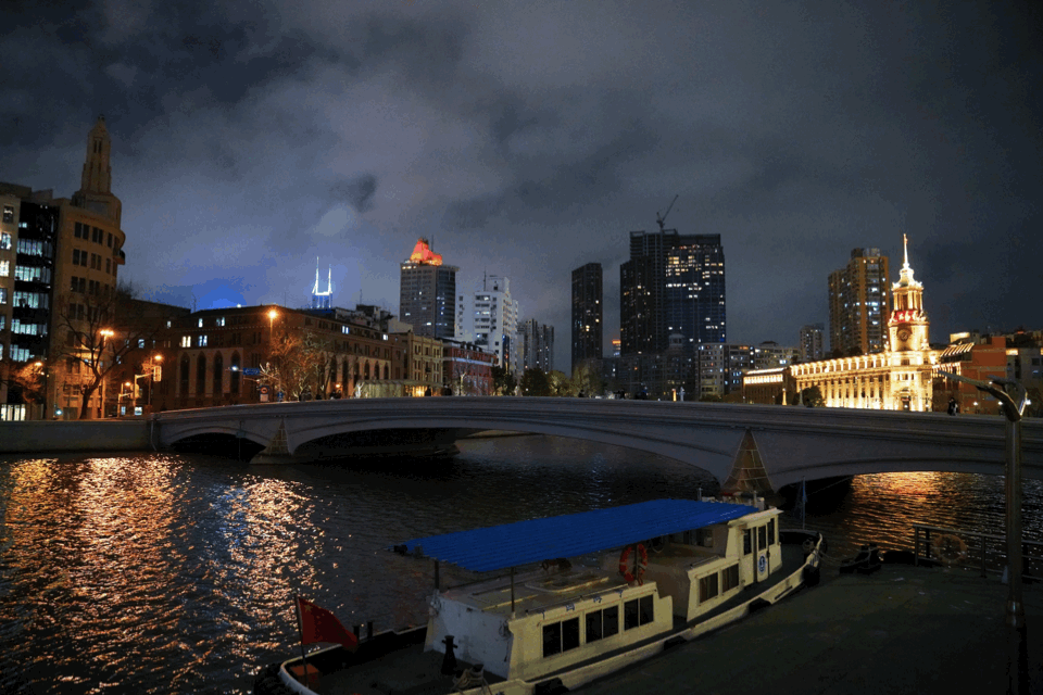 苏州河上的乍浦路桥可以说是是拍摄上海夜景的绝佳位置之一。陆家嘴四件套、外白渡桥、外滩源典雅的中外建筑倒影在苏州河中美轮美奂,有古今融合之意。