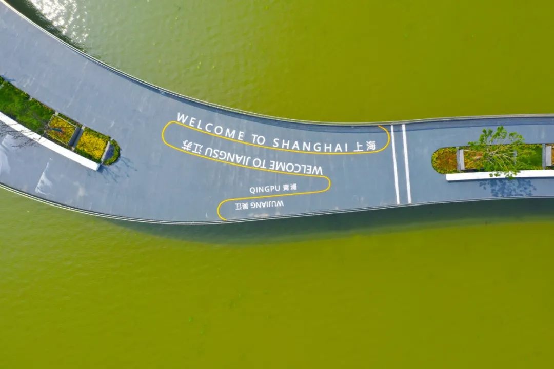 横跨沪苏两地,静卧于元荡湖之上的元荡慢行桥,成为青浦新晋的网红打卡点。桥面双向标注有“WELCOME TO 上海·青浦”和“WELCOME TO 江苏·吴江”。站在TO中的“O”字里,你便一脚踏在了上海青浦,一脚踏在了江苏吴江。