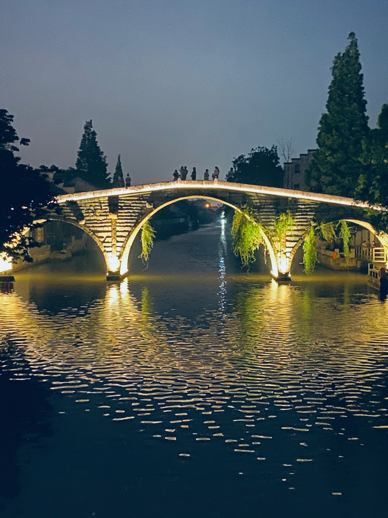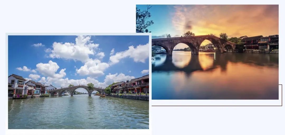 曾有诗云:“长桥驾彩虹,往来便市井。日中交易过,斜阳乱人影”。登上古桥,极目远眺,两岸粉墙黛瓦的明清民宅、傍水茶楼里凭窗赏景的游客、河中摇曳生姿的木船,装点出一幅浓墨重彩的水乡画卷。