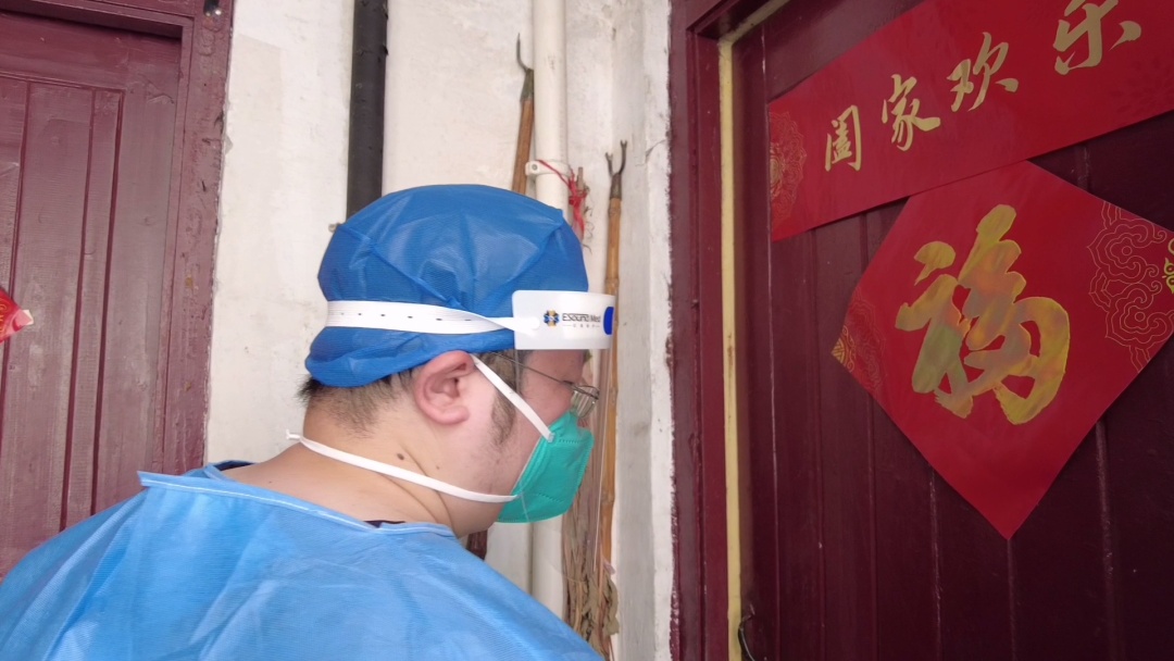 早上8点,在打浦桥街道社区卫生服务中心,记者见到了被病人热情称为阿亮的家庭医生吴鹏亮,他已经从医五六年了。他向记者展示着家庭医生包所带的器械,并邀约记者一起穿起医护防护衣,开启“巡医”的一天。