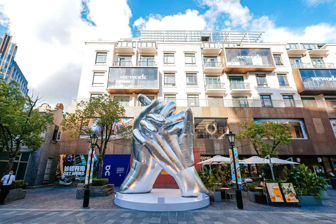 在新天地南里广场,艺术装置《WE 我们》由艺术家吕重阳创作,作品诞生于特定情况下对世界及其关系本质的思考。