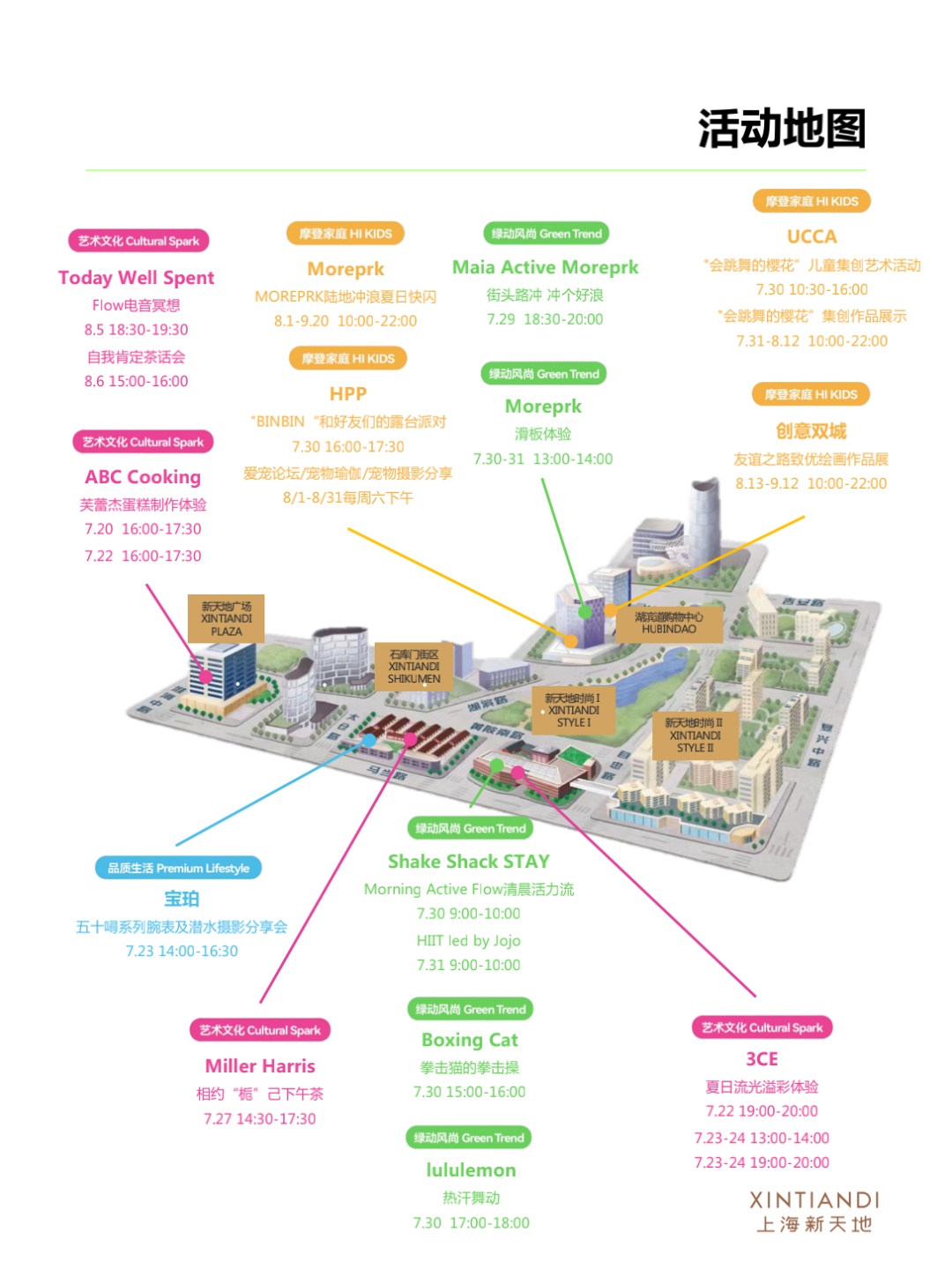 在潮流地标上海新天地,今年七夕推出“新天地,碰头!”社群品牌,7月22日至8月31日,以“新天地,聚一夏”为主题,联动全域集结丰富兴趣社群,打造包括展览、亲子萌宠互动、运动体验、品鉴活动在内的20余场精彩活动,涵盖艺术文化、品质生活、摩登家庭、绿动风尚4大版块,让消费者以兴趣为联结,绘制出专属文化地图,在简简单单,适适意意中享受快乐生活。