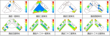从方案阶段开始对建筑风环境进行推敲模拟,通过建筑表面风压,确定利于室外风顺利进入室内的开窗位置。并结合立面造型,酒店每一间客房至少设置一扇开启窗,从而满足室内换气次数的需求。