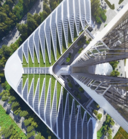 项目定位成为顶科社区和周边区块重要城市节点,进行可再生能源建筑一体化设计,打造低能耗低碳排的高品质建筑,积极响应国家“双碳”目标,响应上海市2021年节能减排降碳重点工作中“强化建筑节能,持续提升建筑能效水平”的任务。