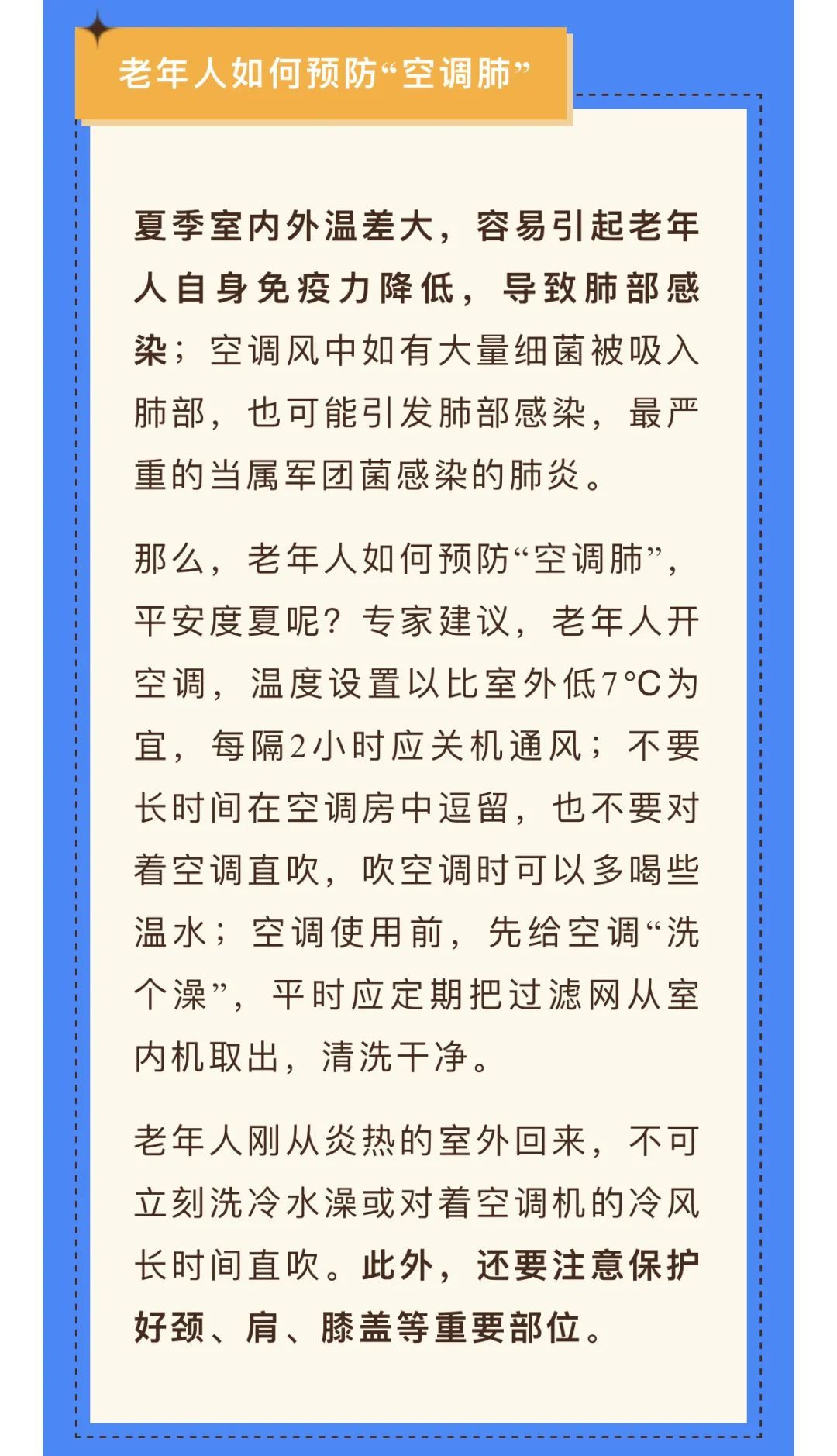 老年人如何预防“空调肺”?蚊虫叮咬后怎样正确止痒?夏季卫生小贴士勿错过