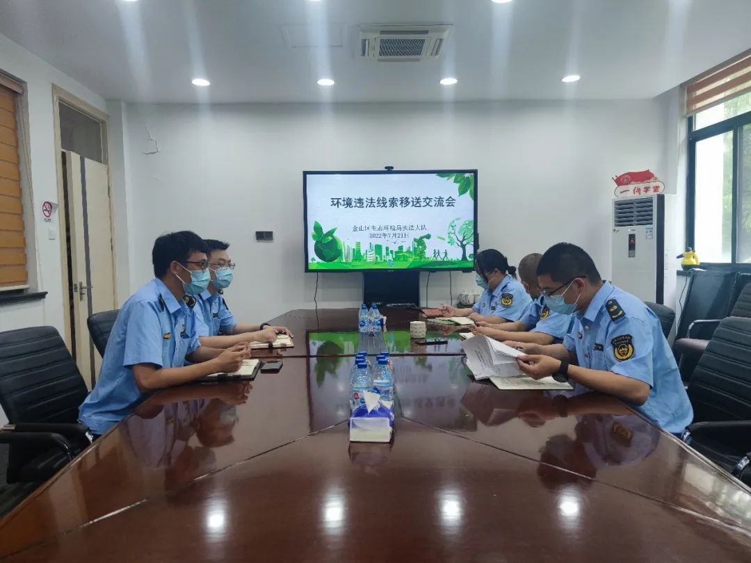 按照《上海市生态环境执法机构环境违法案件移交工作规程》的相关要求,奉贤大队进一步调取、完善了案件相关证据材料。7月中旬,奉贤大队携案卷材料,专程赴金山区生态环境局执法大队进行案件线索移交。两区大队就今年以来环境执法的情况进行了交流,并在线索移送、联防联动、信息共享、业务交流等四个方面建立工作机制,进一步强化双方信息沟通和工作衔接,探索跨区域案件线索移送新模式。