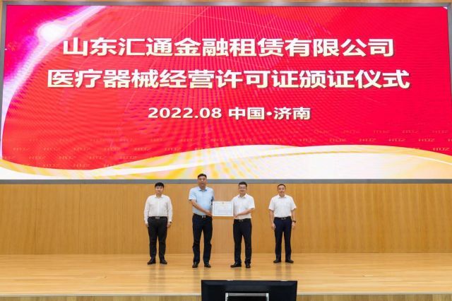 据悉,汇通金租于2015年12月由中国银监会批准设立,是山东省首家、全国信息产业唯一一家持牌金融租赁公司。此次颁发的医疗器械经营许可证是租赁公司开展医疗设备融资租赁业务必须具备的证件。此前,济南还没有金融租赁公司申请医疗器械经营许可证的先例。
