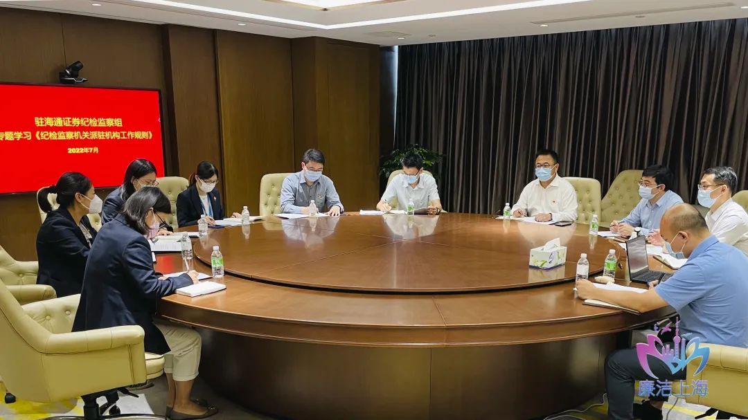 驻海通证券纪检监察组集中学习《规则》及系列解读文章,交流研讨贯彻落实《规则》的工作举措。(驻海通证券纪检监察组供 陶伟 摄)