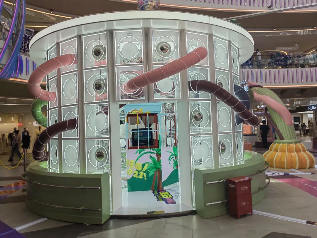 在南翔印象城MEGA鹤鸣中庭展区,“时间规划局”“‘心’记漫游”“拯救麻花”“飞向太空”4大场景营造出超现实主义意象,为消费者带来丰富的数字化体验。“有一种现实世界与虚拟世界交叉的感觉,大人、孩子都很喜欢。”消费者倪英表示。