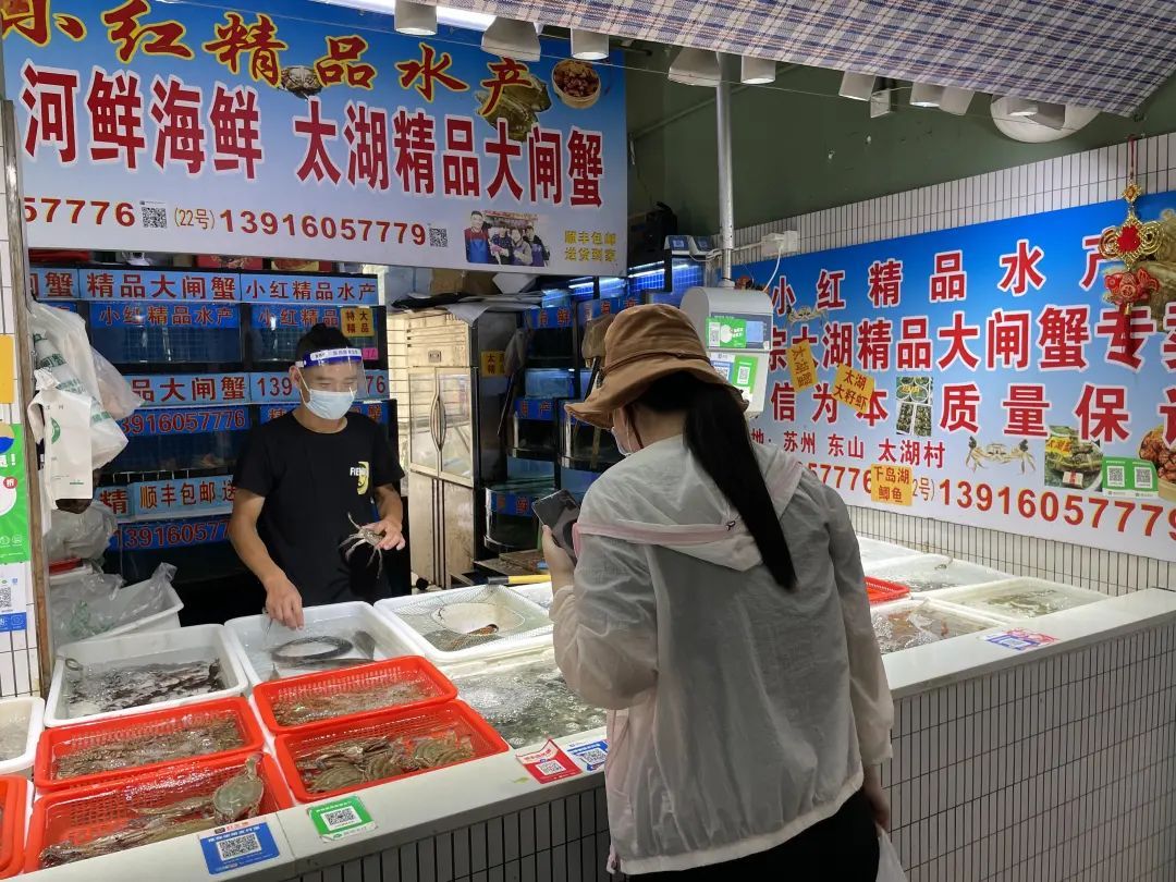 在另一家售卖冷冻梭子蟹的摊位前,6两大小的梭子蟹售价在35元/斤。正在选蟹的李老伯表示,“相比活蟹,这个冰鲜的口感虽然略差,但性价比更高。买回家用葱姜爆炒,或者自制蟹糊,都是不错的选择。”