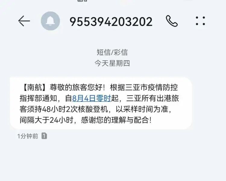 欢乐的画风在8月2日迎来了转变。8月1日,三亚发现1名新冠肺炎确诊病例,疫情警报再次拉响。次日三亚宣布经营性密闭场所暂停开放,并呼吁广大居民非必要不离岛,离岛需凭48小时核酸阴性证明或24小时内采样记录办理乘机乘车手续。