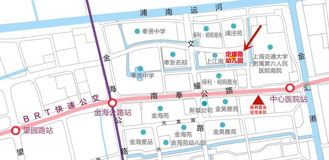 定康路幼儿园(暂定名)地理位置优越,位于上江南东侧,周边小区有保利明玥湖光、保利明玥霞光、浦泾苑、奉发名邸等。还有今年6月,保利置业又成功竞得的奉贤新城10单元住宅地块,位于中心医院南侧,交通便利,教育、医疗配套成熟。