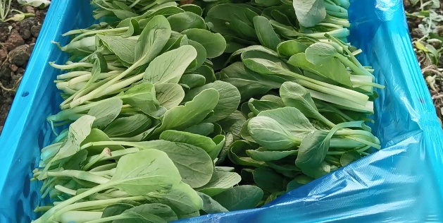 一大早,记者在上海博强果蔬专业合作社看到,工人们正在抓紧采摘绿叶菜。尽管已经避开了高温时段,但由于近期天气炎热,蔬菜的黄叶增多,还是给采摘带来了一定难度。