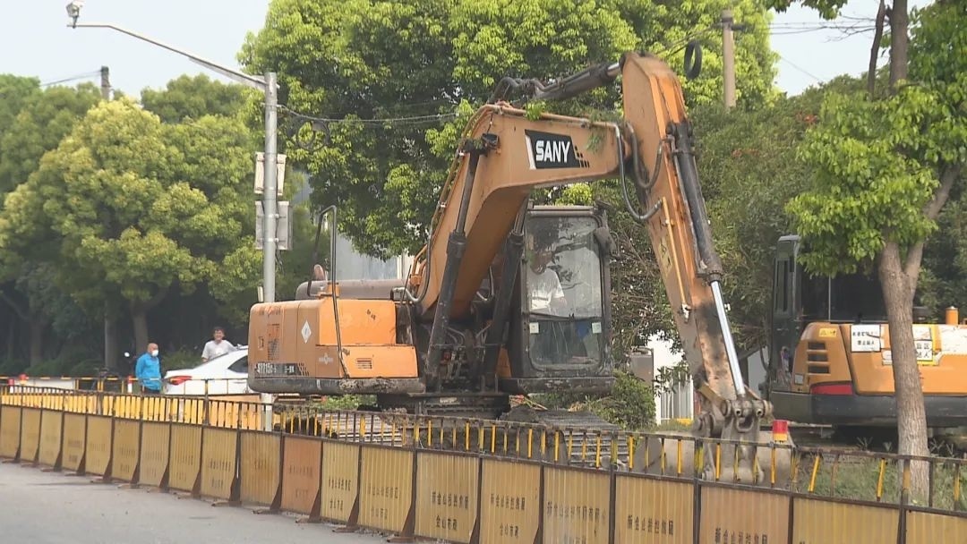 近日,记者来到金山区漕泾镇古岗路看到,挖掘机正在进行道路的翻挖。