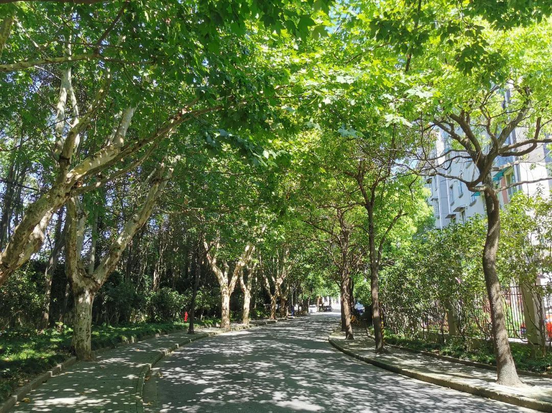 目之所及,皆是绿色。在淞宝中心城区,市民青睐的林荫道还有牡丹江路、密山路等市政道路,经过几十年的生长,道路两侧的法桐高大又繁密。阳光透过斑驳的树影洒落,让人在喧嚣的夏天中感受到一份难得的静谧。