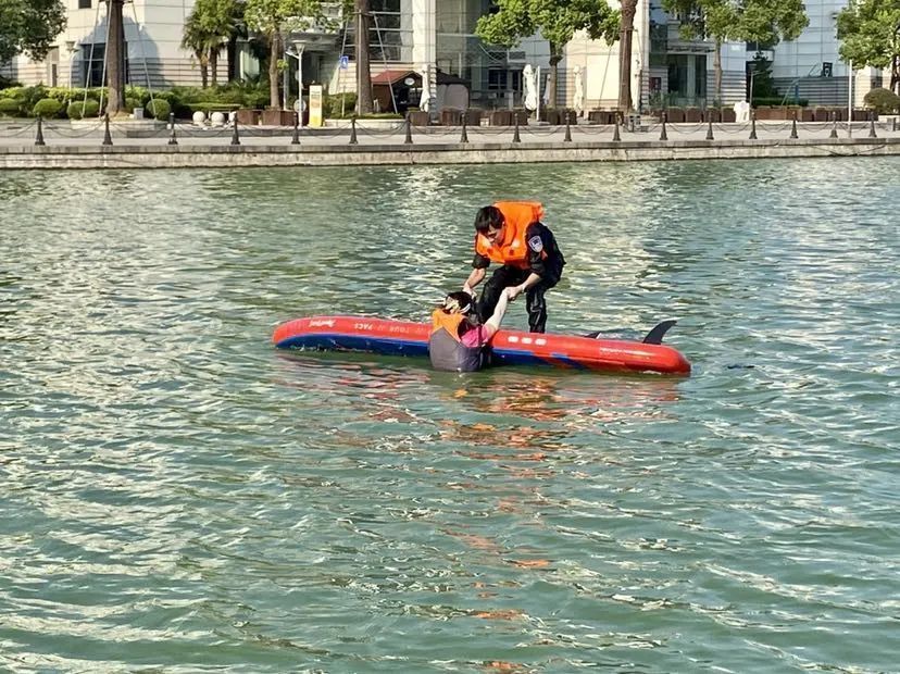 据了解,宝山作为一个三江汇合的地方,辖区内自然水系很多。在自然水域进行救援,要根据不同水域情况、水流状况、风速等情况综合判断,方可决定使用警用橡皮艇或者桨板救援,目的是以最快速度将溺水者救出。