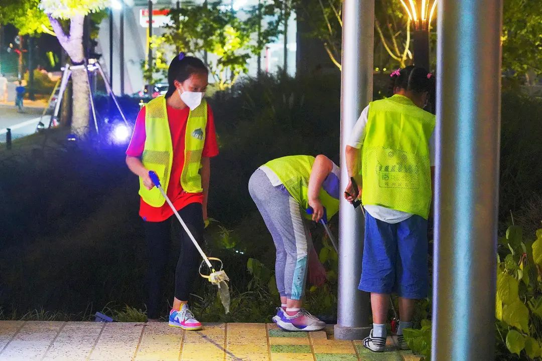 完成最后一个历史建筑点位的讲解后,这支队伍来到樱花谷驿站。稍作休息,活动进入第二个环节——“垃圾拾起称重”。“小小“讲解员”变身街头环保小卫士,对不文明现象说“不”。