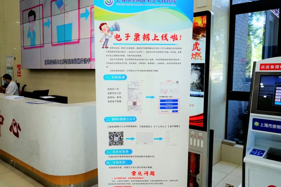 记者发现,医院门诊大厅还设置了自助发票打印机,市民也可自助打印相关票据。另外,市民还可关注微信公众号“崇明e健康”,绑定个人信息后,点击就医服务,进入电子票据,可实现随时查看、下载和报销使用。