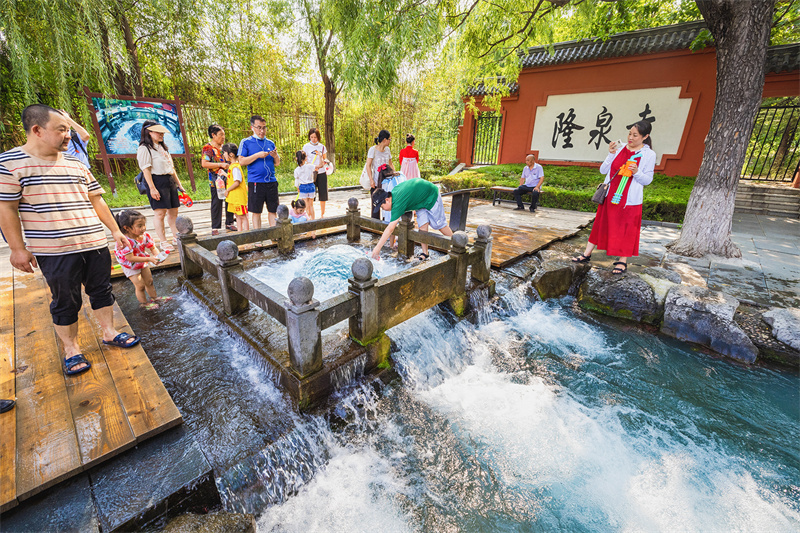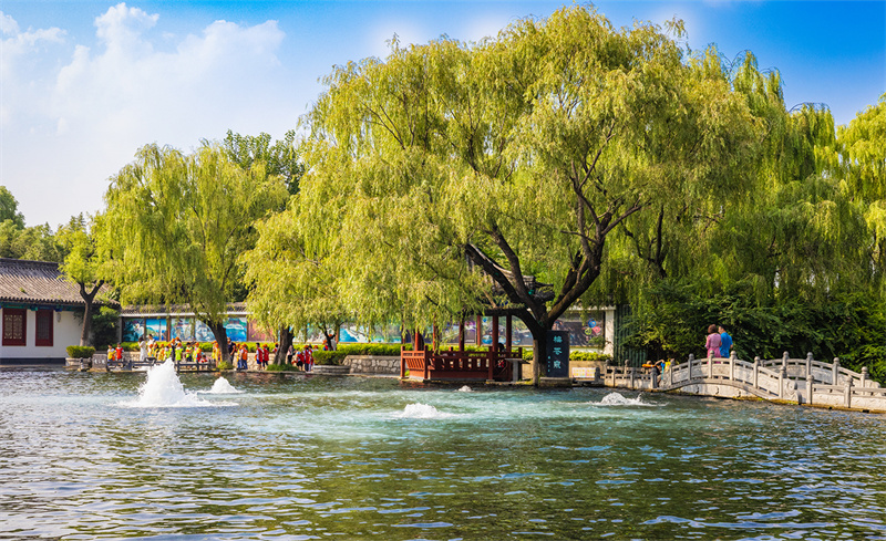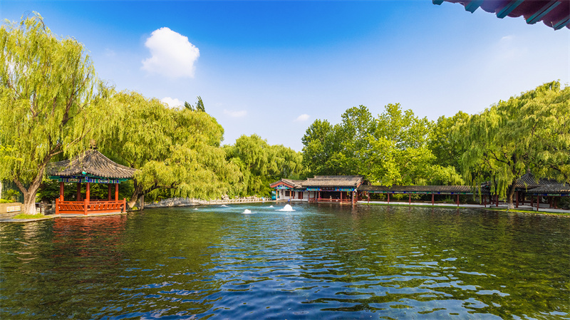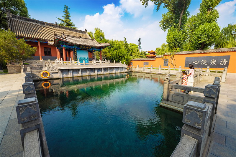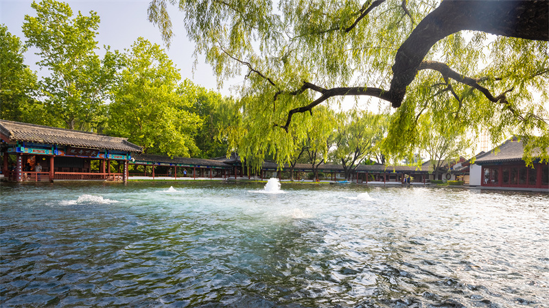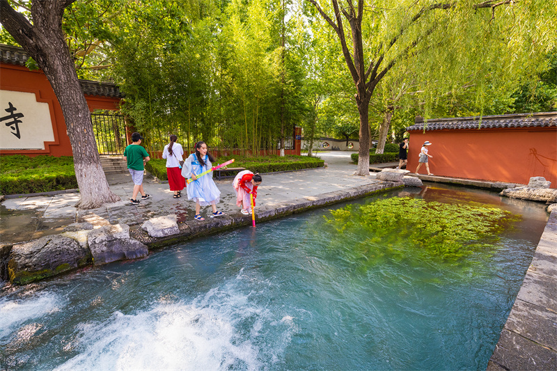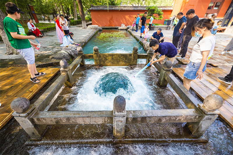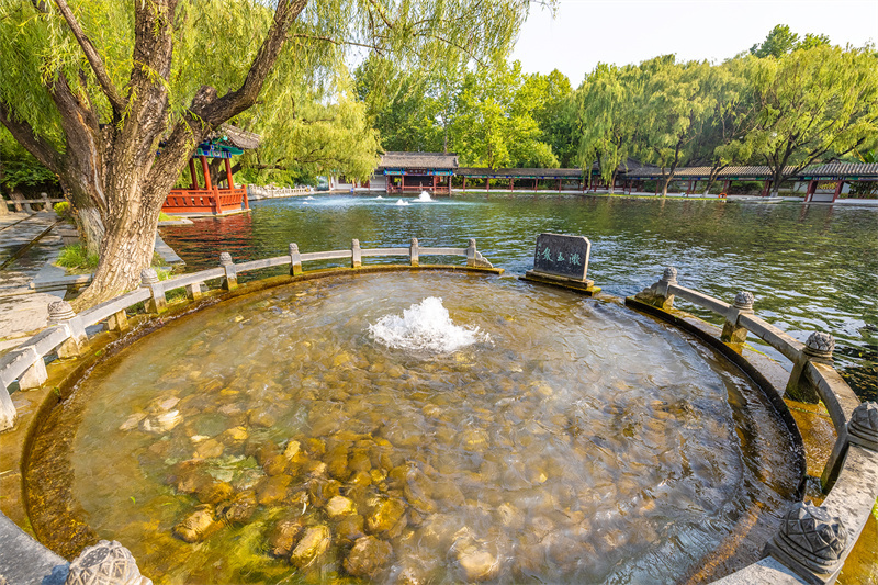 热浪滚滚,酷热难耐。来到章丘百脉泉景区,这里一片清凉。墨泉水柱翻腾突起,冲出泉口,周边漱玉泉、梅花泉、金镜泉也争相喷涌。徜徉在泉水间,看亭台楼阁绿树环绕,让人心旷神怡。(大众日报客户端记者 杨润勤 报道 摄影 张宝贤)