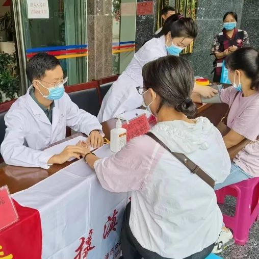 义诊过程中,肛肠护理组刘林为老年人登记问诊信息,测量血压、血糖,并将精心准备的老年疾病中医健康教育处方发放给每一个到场的老人,通过手册的方式宣传老年人中医养生保健知识。