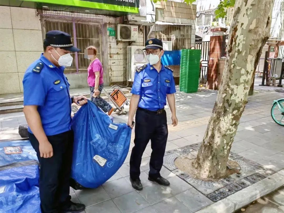 针对居民小区、商业市场、宾旅馆、租赁用房、建筑工地、旧改基地、沿街商户、流动摊贩等重点领域,江浦中队与公安、市场监督等部门“三所联动”,每日开展联合执法行动,切实阻断因人口流动无序而产生的疫情流入风险。