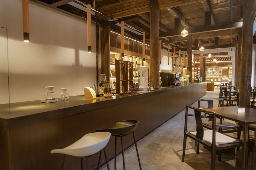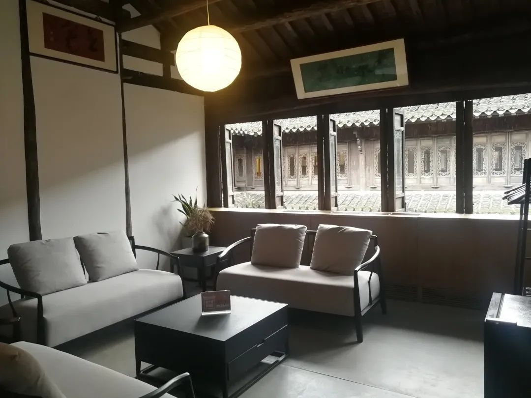 正厅有一张咖啡吧台,是与书店同期对外开放的,再往里走是一处天井,摆放着沙发茶几。