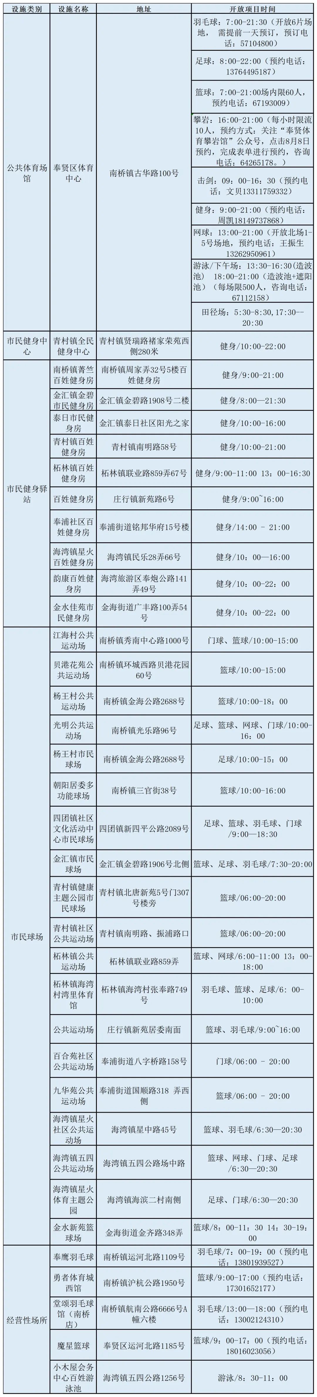 免费开放体育场所清单