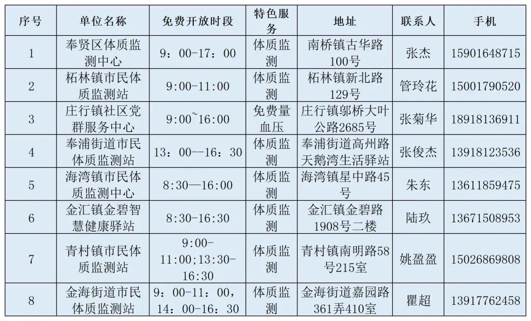 体质监测站开放清单