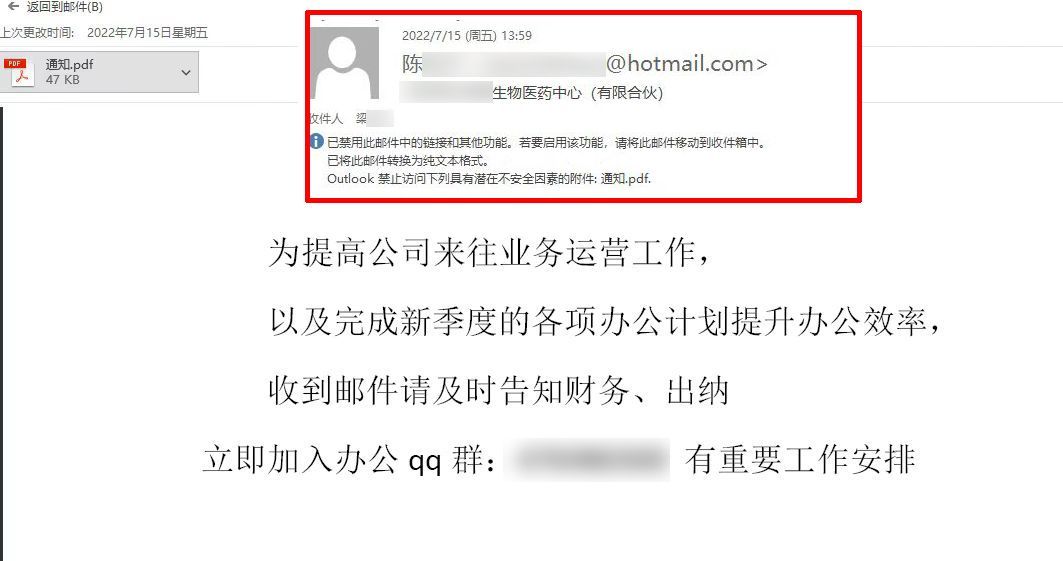 “骗子使用了和我们老板一模一样的头像昵称,而且我们公司以前也使用QQ群开展工作,所以我当时并没有怀疑对方身份”。梁女士在收到邮件后,即通知财务张女士于7月15日一起加入该群。