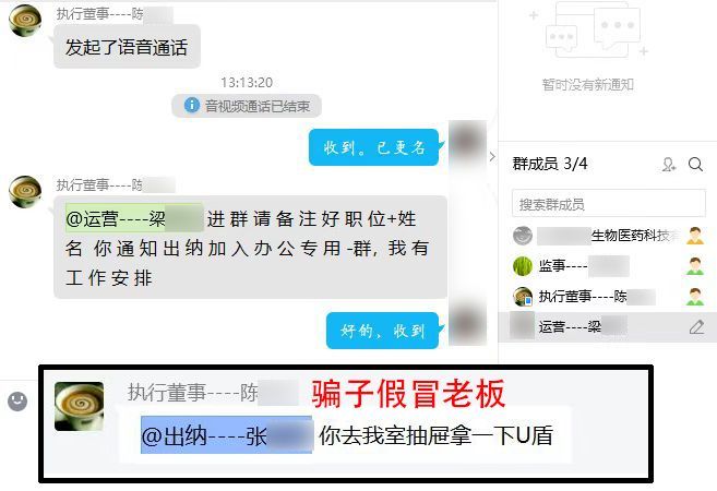 “一开始群里只有3个人,除了骗子冒充的我司法人外,还有此前合作公司的首席执行官,后来又陆陆续续有不少我们和对方公司的人进入群聊,因为我不具体负责该项目,所以没有再多关注群内大家在聊什么。”梁女士告诉民警,现在工作群特别多,自己确实疏忽大意,给了骗子可趁之机。当群内聊起“项目款”的具体情况后,梁女士便不假思索地把负责财务的张女士拉入群聊,而引发的“蝴蝶效应”就是,张女士认为梁女士是自己的熟人,没有存在诈骗的可能,从而降低戒备。