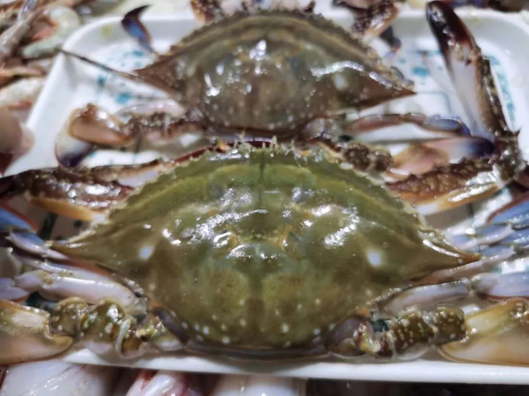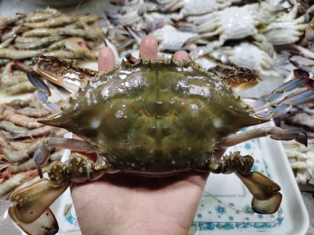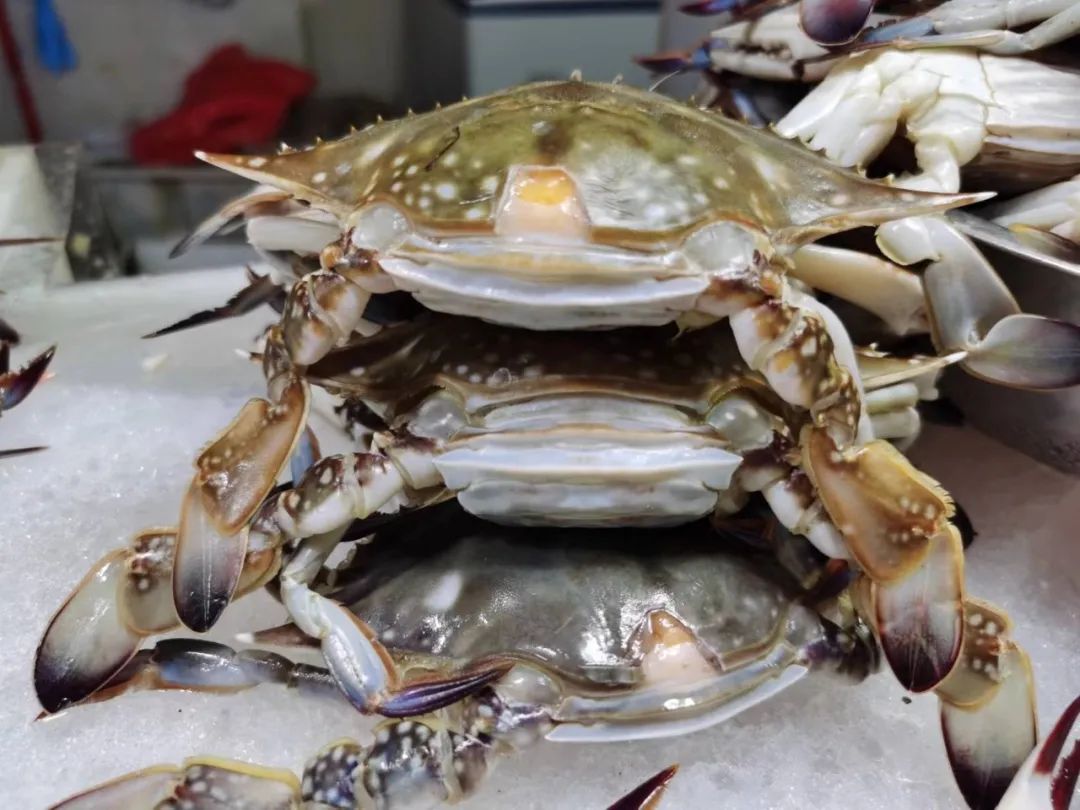 大量上市的梭子蟹不仅味道鲜美,价格也适中、亲民。菜场里质量上乘、重约5-6两的冰鲜梭子蟹售价35元/斤,3-4两的售价25元/斤。