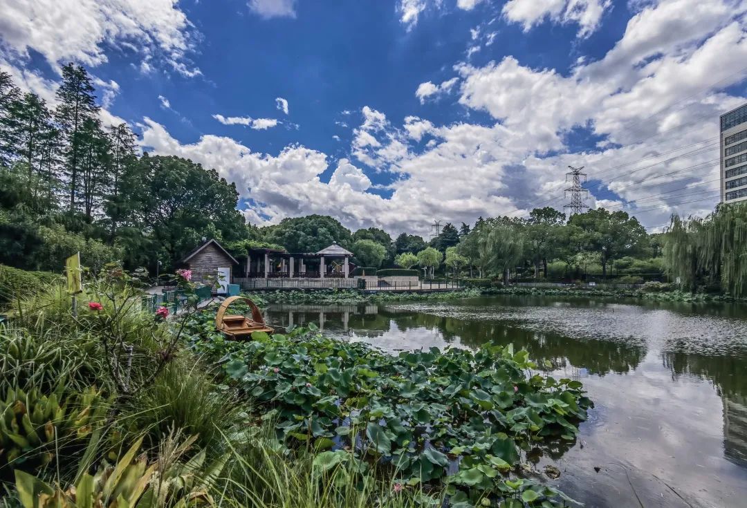 今年,甘泉公园成片的荷花呈现出 “接天莲叶无穷碧”的场景,从入口处(西乡路门)“十里风荷”主题雕塑可窥一斑,衬以假山、祥云,将自然山水风光原封不动搬进公园。往里走一些,两侧盆栽荷花清幽雅致,种植器皿随着荷花品种的变化而有所不同,像一位位谦谦君子迎接四方游客光临,每一盆荷花后方木质屏风上水墨荷韵与植物品种、习性的科普知识趣味结合,引人侧目。