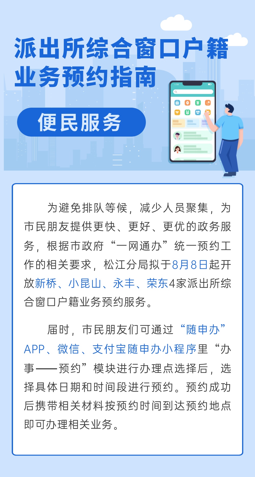 松江4家派出所综合窗口户籍业务可预约办理,预约指→