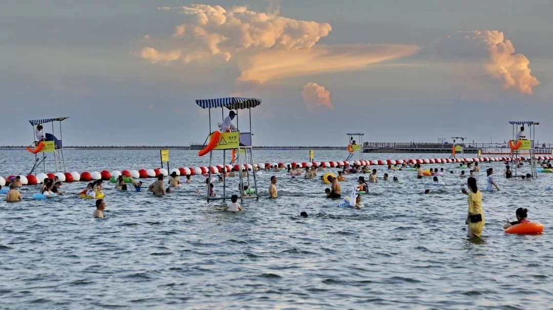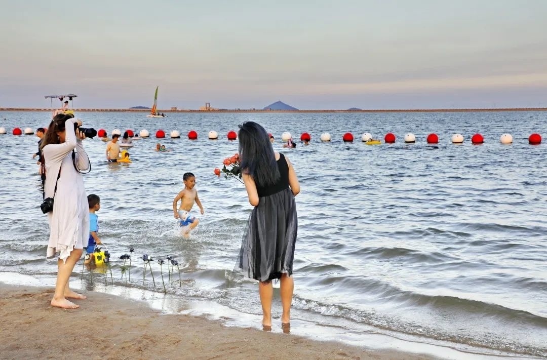 金山城市沙滩变得热闹起来
