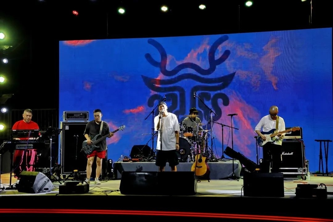 露天沙排馆里的乐队表演