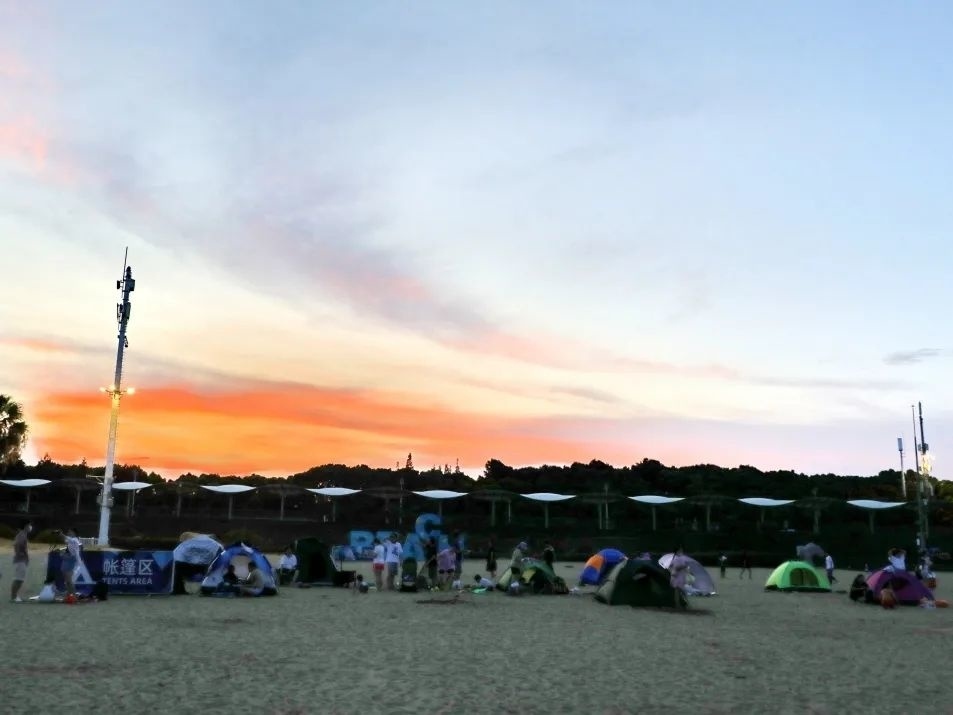 游客们在沙滩上搭起了帐篷