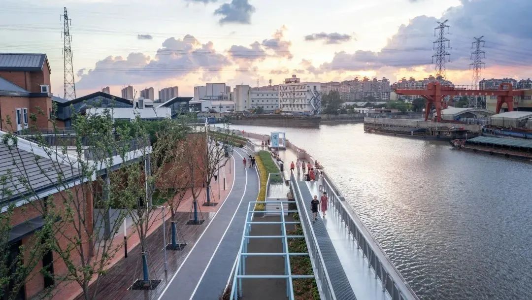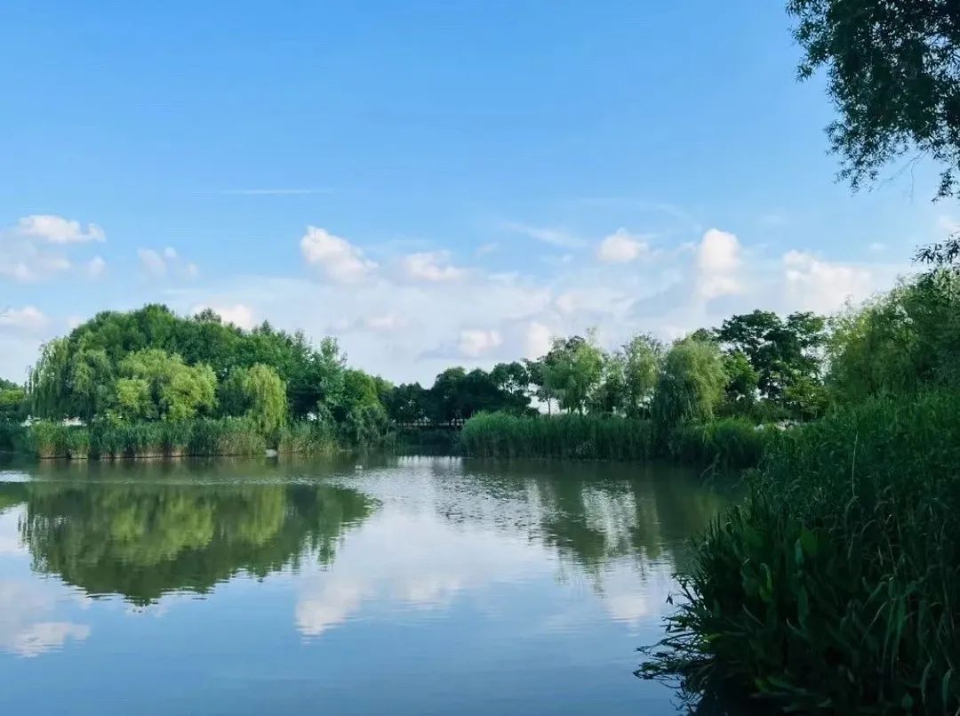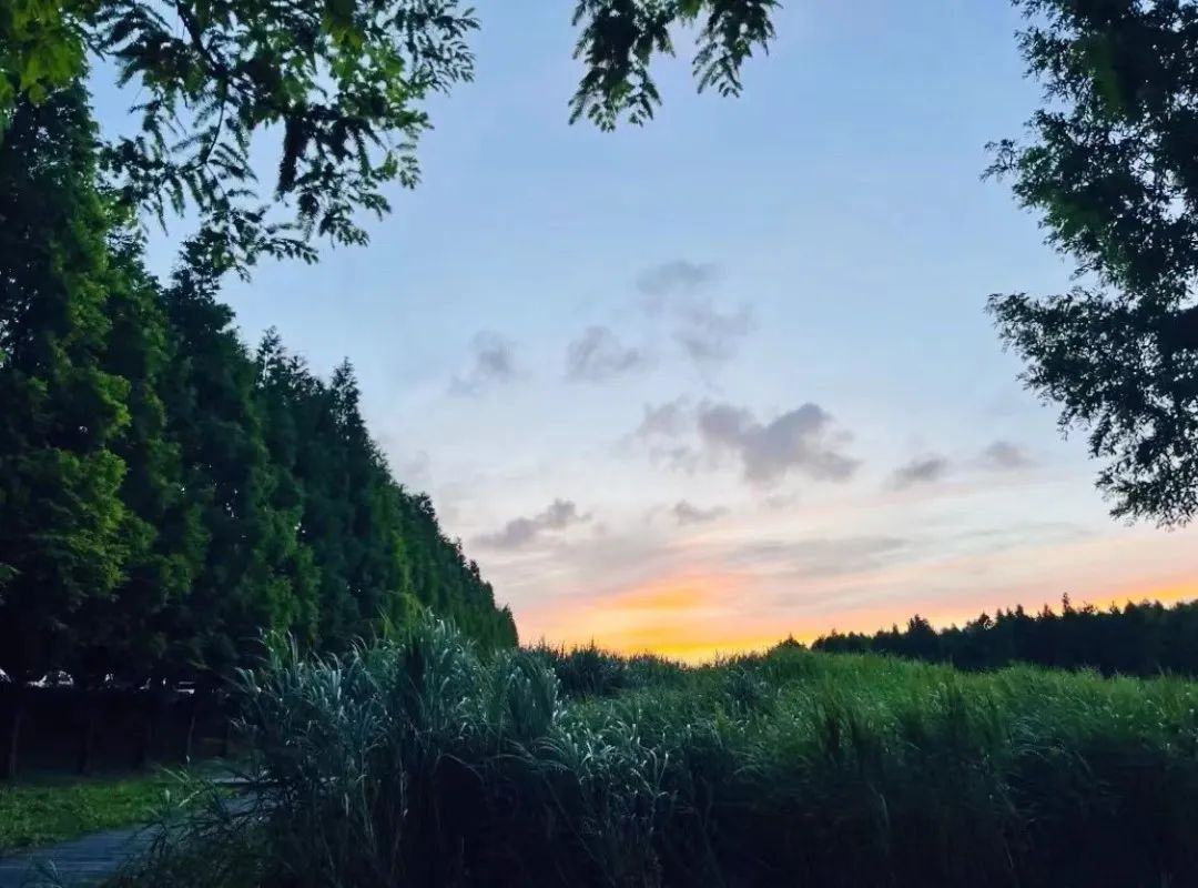 穿过公园还可以一路走到蕰藻浜畔,这里的视野更开阔,闲坐庭阶,看晚霞落日圆月,听清风流水蝉鸣。