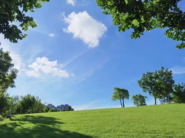 山坡起伏、地形丰富、疏林草地相间,放眼望去,大片绿色让人心旷神怡。