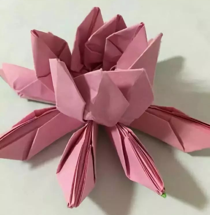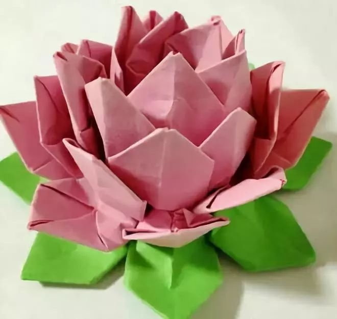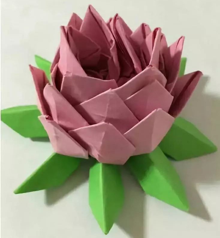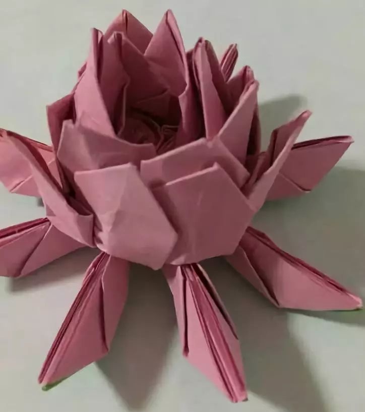 ○ 将第三层粉色纸折用同样的方法向上折好,要注意每层之间留出一定空隙,不能太紧