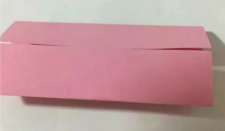 ○ 再将第二层粉色纸折顺序向上弯折,位置尽量与第一层相错开