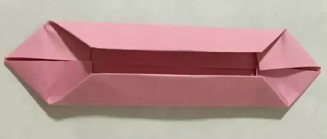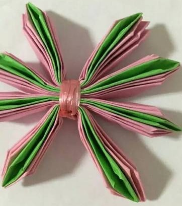 ○ 再将两边向中间进行折叠,然后重复以上过程,准备好12个粉色纸折、4个绿色纸折