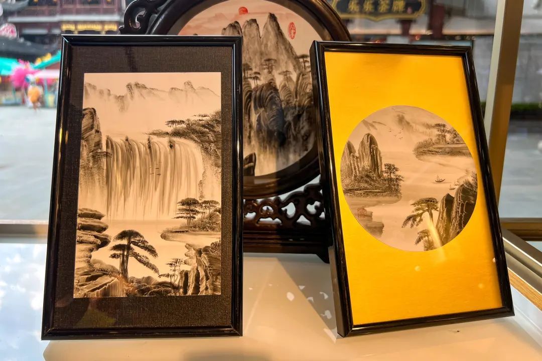走进店内,将近200平方米的店铺里陈列着玲琅满目的文创商品,包括香囊、刺绣、手作包包等丰富品类。但最具特色的,还是几个手工制品展示柜台。“比如内画、草编、指掌画等,我们会邀请来自各地的相关匠人过来现场制作,同时展示相关作品,通过以展代销,让顾客可以零距离观摩体验中国传统技艺,非常具有吸引力。”